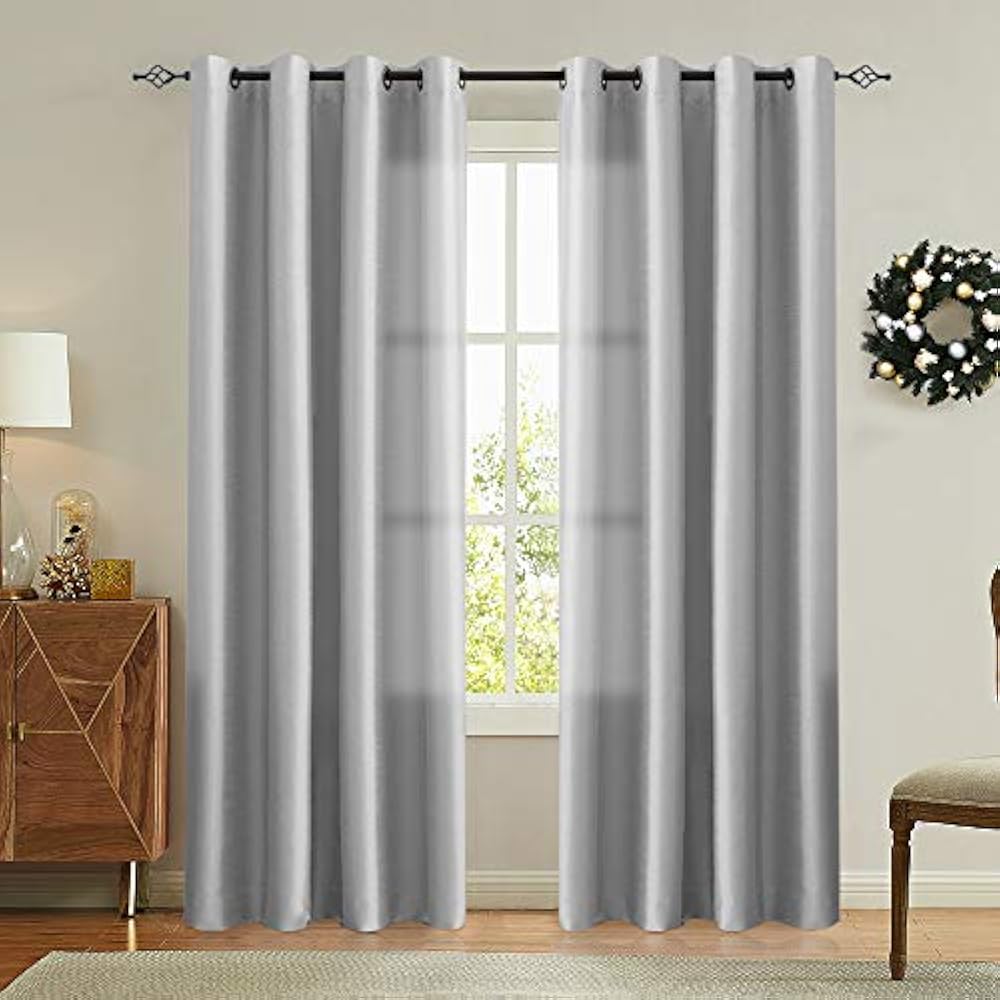 Vangao Grey Curtains 84 Inches Long Faux Silk Opaque Light