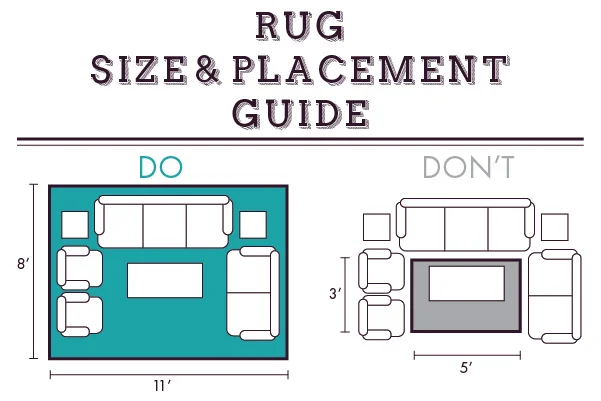 For smaller areas decrease that amount. When selecting an area rug make sure that it extends under all the key pieces of furniture in the room. And extra large area rugs 12x15 12x18 and larger with plenty of custom sizes available from our made to order rug home rugs. If you choose a layout with the sofa on the rug the rug should extend at least 6 on each side for proper scale.